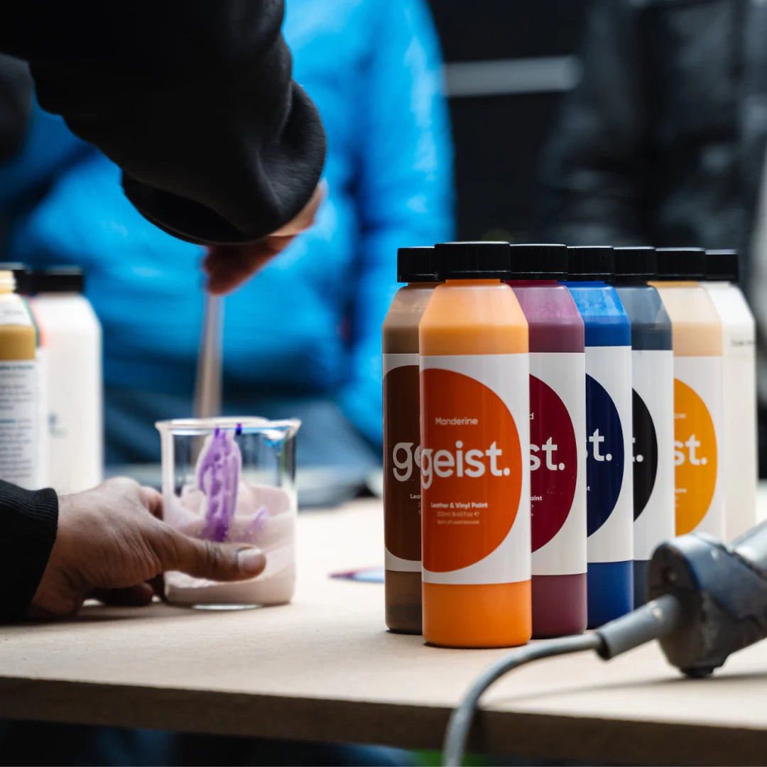 Geist Primer es una imprimación profesional diseñada para mejorar la adhesión de la pintura sobre superficies de cuero y vinilo durante procesos de restauración o recoloración. Actúa como promotor de adherencia, penetrando en la superficie gracias a sus aglutinantes suaves y creando una base ideal para aplicar la capa de color con mayor uniformidad y durabilidad.